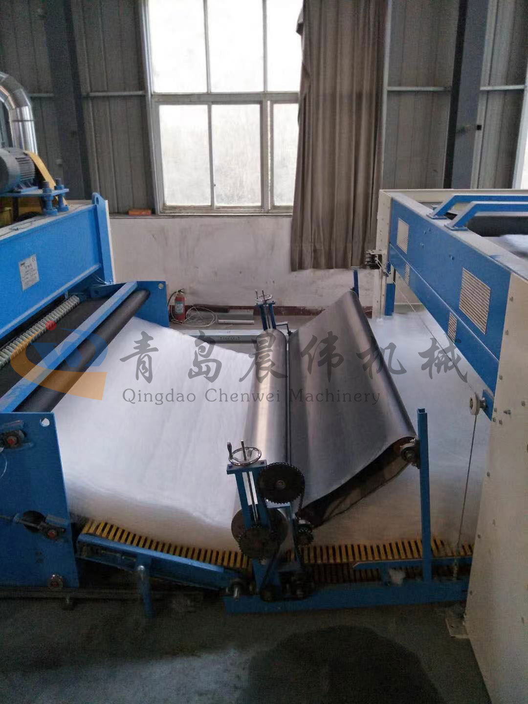 5. CWPW-鋪網(wǎng)機(jī):用于將梳理纖網(wǎng)通過移動(dòng)小車交叉折疊為所需幅寬和定量的多層纖網(wǎng),以供后道工序使用。鋪網(wǎng)輥采用特殊結(jié)構(gòu),加裝壓網(wǎng)輥和導(dǎo)流板,不飄網(wǎng)不起皺,五只大功率電機(jī)精確控制各部件的運(yùn)動(dòng),電動(dòng)輸出簾高度調(diào)節(jié)裝置