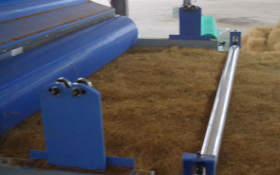 本生產(chǎn)線是利用椰棕纖維和膠水通過高溫?zé)犸L(fēng)穿透粘合定型,通過壓板機多層壓實而成,椰棕墊是床上用品、服裝家具、沙發(fā)高級的芯墊材料。