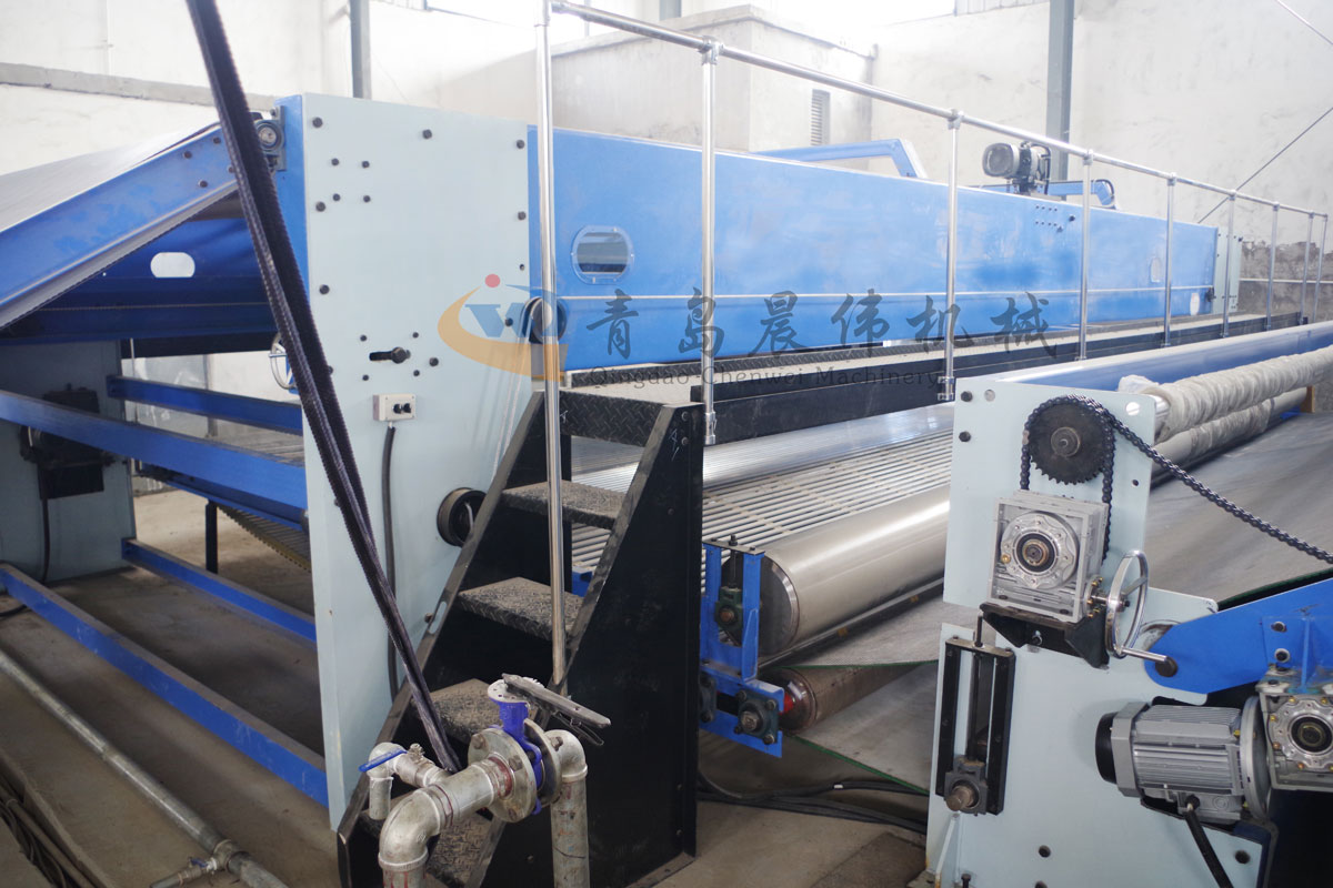 5. CWPW-鋪網(wǎng)機(jī):用于將梳理纖網(wǎng)通過(guò)移動(dòng)小車(chē)交叉折疊為所需幅寬和定量的多層纖網(wǎng),以供后道工序使用。鋪網(wǎng)輥采用特殊結(jié)構(gòu),加裝壓網(wǎng)輥和導(dǎo)流板,不飄網(wǎng)不起皺,五只大功率電機(jī)精確控制各部件的運(yùn)動(dòng),電動(dòng)輸出簾高度調(diào)節(jié)裝置