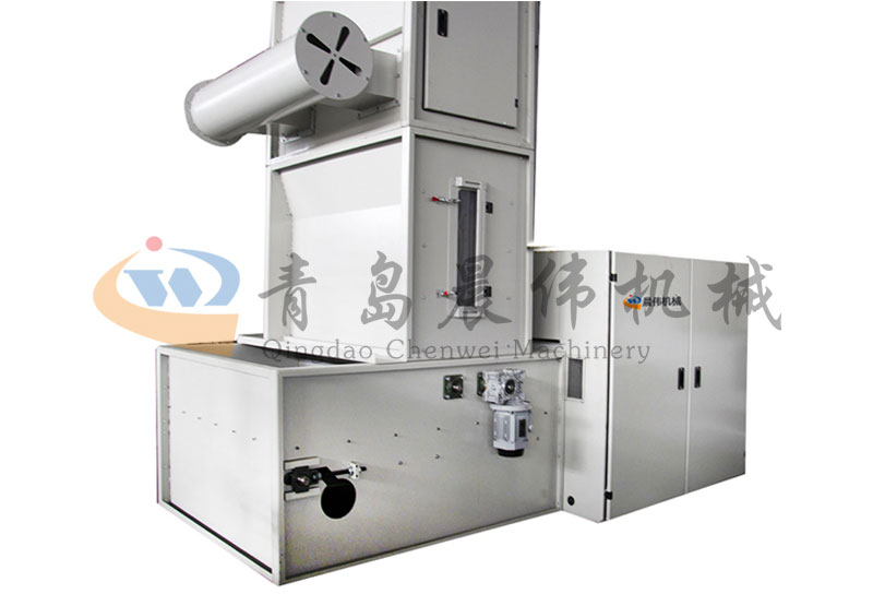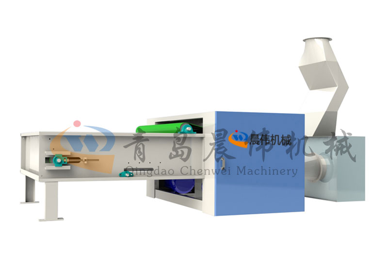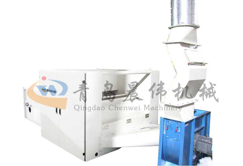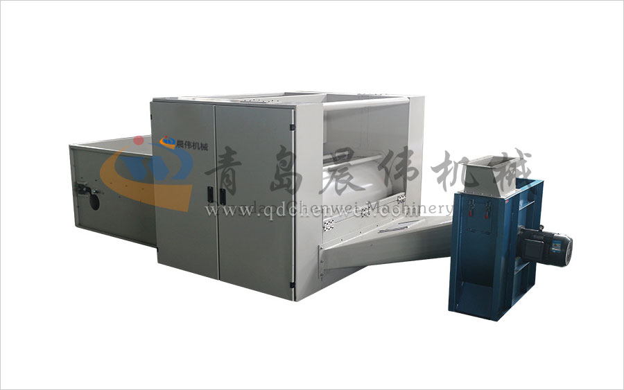 各種不同纖維被放入水平輸送簾,經(jīng)壓棉輥和對(duì)輥羅拉喂入,經(jīng)輸棉風(fēng)機(jī)以適量的風(fēng)量輸送纖維原料供后道工作使用;并配備橋式除鐵裝備。