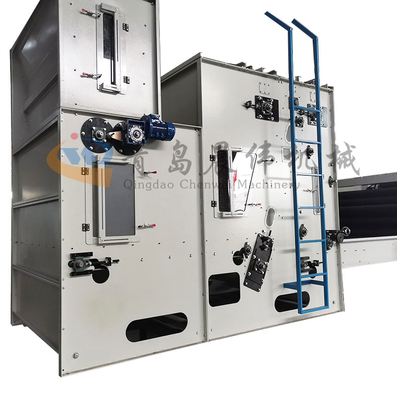 震動給棉機(jī)將開松纖維進(jìn)一步混合,并通過震動形式輸送出均勻的棉層供下一道工序使用.可用于滌綸,粘膠,尼龍,丙綸,玻璃纖維等多種纖維的給棉.